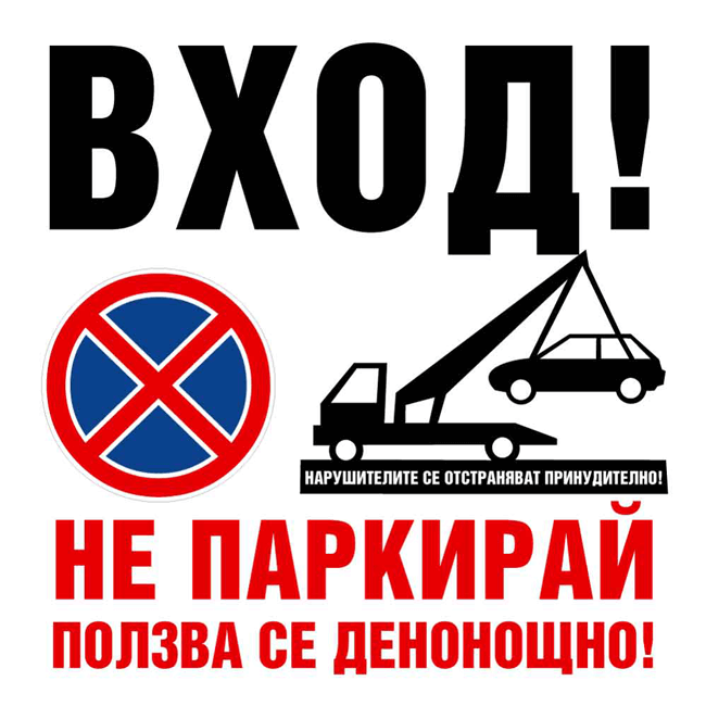 Вход! Не паркирай! Ползва се денонощно!