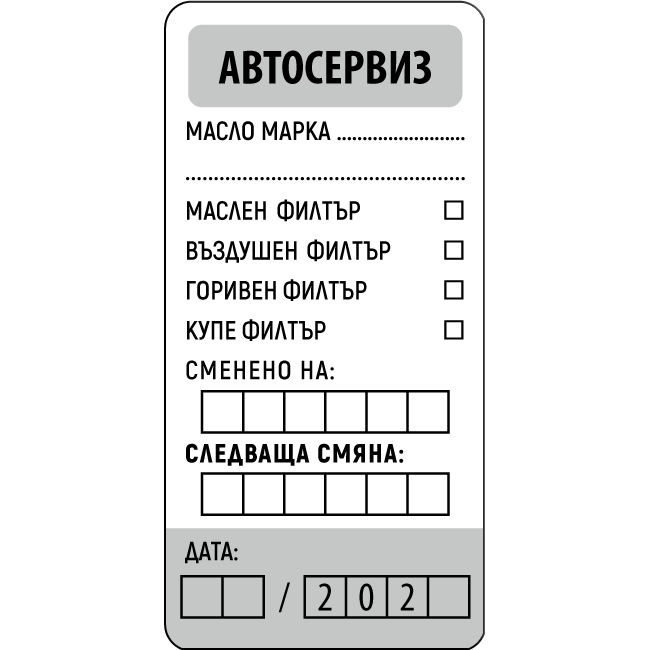 Стикер за смяна на масло и филтри